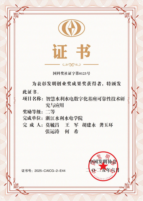 近日,中国发明协会正式公布2025年度发明创业奖评选结果,我校计算机学院莫毓昌教授团队的“智慧水利水电数字化基座可靠性技术研究与应用”荣获二等奖。