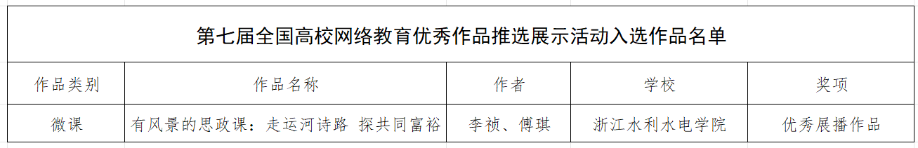 近日,由教育部思政司主办的第七届全国大学生网络文化节和全国高校网络教育优秀作品推选展示活动公布遴选结果,我校推选的《有风景的思政课:走运河诗路 探共同富裕》获评优秀展播作品,《海塘驿站 浙江记忆》获评优秀入围作品。