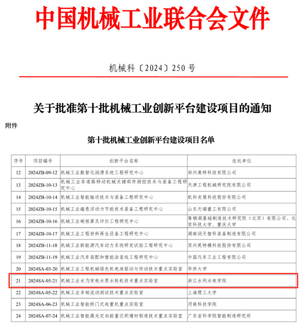 近日,中国机械工业联合会发布了第十批机械工业创新平台建设项目名单,由我校机械工程学院申报的创新平台项目“机械工业水力发电水泵水轮机技术重点实验室”(2024SA-05-21)成功获批。