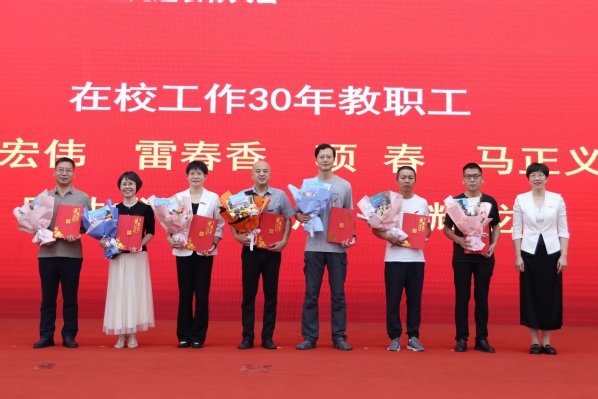 钱天国代表学校向辛勤耕耘在教育教学和管理服务一线的全体教职工以及关心支持学校发展的离退休老教师们,致以节日问候和衷心感谢,向受表彰的先进集体和个人表示祝贺。