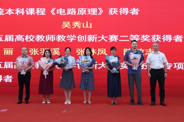 万健指出,教师是立教之本、兴教之源。学校近年来持续深化教育教学改革,不断加强师资队伍建设。广大教师团队在课堂教学、科研创新及社会服务中积极践行教育家精神,取得了显著成果,为学校发展注入了核心动力。希望大家以受表彰的先进为榜样,深刻领会、自觉践行教育家精神,不断提升教学、科研、管理和服务水平,以更强的责任担当和更高的职业追求,共同推动学校各项事业高质量有特色发展,为教育强国和教育强省建设贡献水院的智慧和力量。